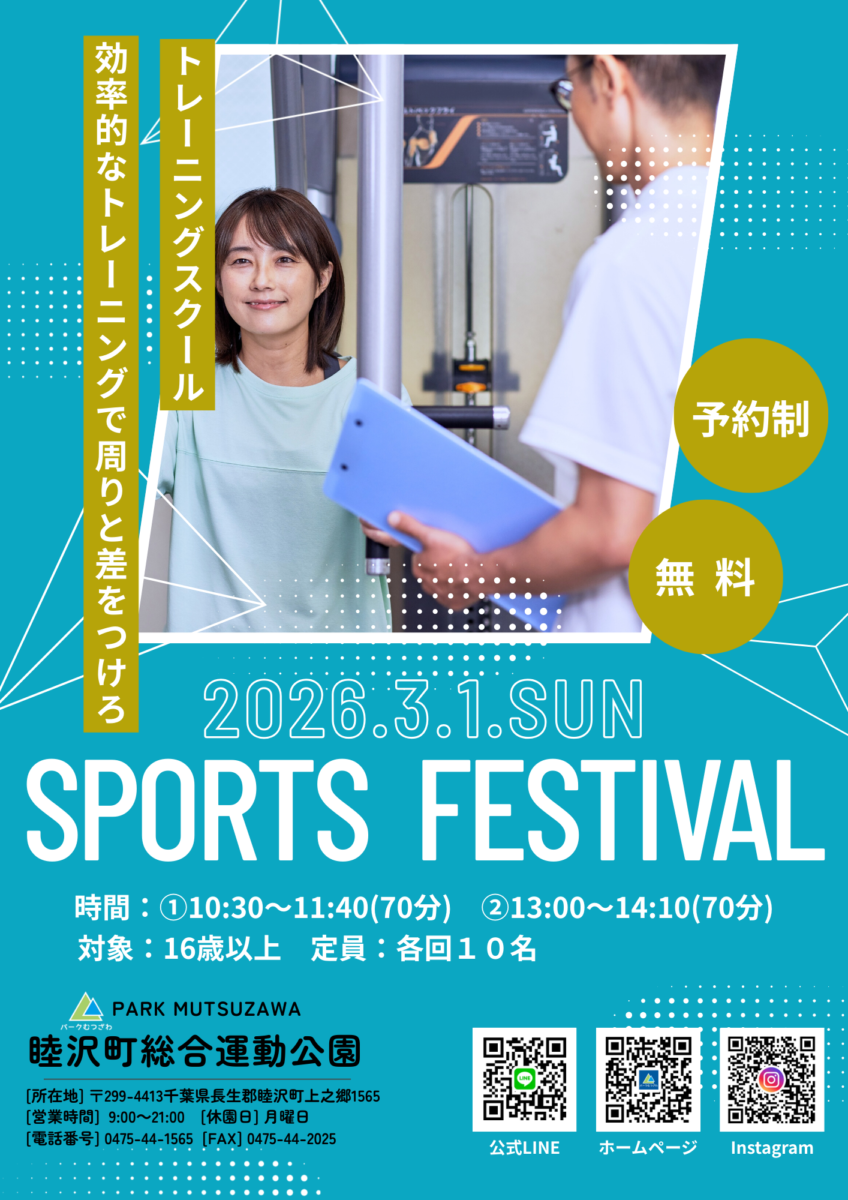 - 場所: スポーツフェスタ内 トレーニングルーム