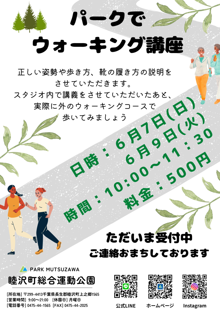 靴の履き方から歩く姿勢の説明から、パークむつざわ内のウオーキングまでをご一緒に!