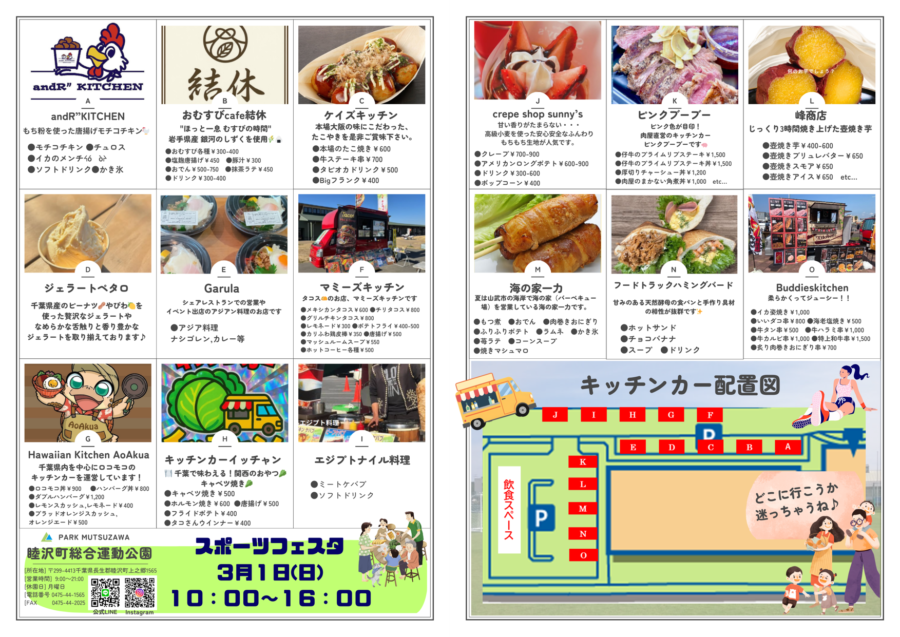 来る3月1日開催のスポーツフェスタのキッチンカー15台のラインナップを公開します!